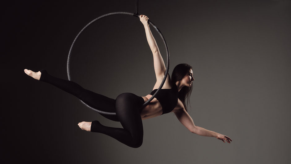 Aerial Hoop ist ein super Ganzkörpertraining. Neben Kraft, Kraftausdauer und Koordination wird vor allem die Balance und Tiefenmuskulatur gefördert. Komm vorbei und probiere es aus.
